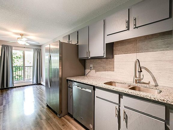 2BR/1BA third-floor unit with large balcony and scenic views. Newer stainless-steel appliances and flooring throughout. Granite counters in the kitchen & bath which have dual sinks. Convenient in-unit laundry, an additional storage closet down the hall, and secure underground heated parking with a carwash. Across the street from 2500-acre Hyland Park and just down the road from Bush Lake. Amenities include a shared outdoor pool behind the 7401 building.