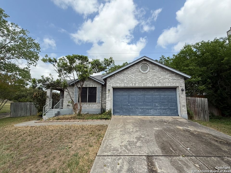 Stop Renting, this one story 3-bedroom 2 bath 2 car garage with no carpet, bright open popular floor plan has an Island kitchen, lots of cabinets, counter tops, large Walkin pantry /laundry room. Large primary bedroom with walk in closet, bath has garden tub shower combo with double vanities. No neighbors behind you, it has an oversized yard and big covered patio that is great for entertaining, putting a pool in, are just for a relaxing time barbequing with family or friends. With a Little tender loving care, you can make it truly your own. Seller selling as is. Well below appraisal district. This is Great Location close to 35 and 1604, minutes to shopping, medical and NEISD schools. NO HOA !