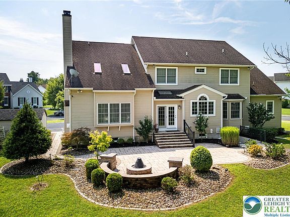 Stunning 5 bedroom, 4 full and 2 half bath custom colonial in the desirable Lehigh Crossing subdivision, East Penn SD, offering over 3,800 sq/ft plus a finished walk-out basement on a 15,986 sq/ft corner lot. A dramatic 2-story foyer with turned staircase and hardwood floors leads to formal living and dining rooms. The gourmet kitchen with 42” cabinets, granite counters, center island and breakfast area opens to a soaring 2-story family room with floor-to-ceiling stone fireplace. The main level includes a private office or 6th bedroom, large laundry, half bath, and a private guest suite with full bath and sitting area—ideal for multi-generational living. Upstairs features a luxurious owner’s suite with tray ceiling, sitting area, spa bath and walk-in closet, plus a junior suite and two bedrooms with Jack & Jill bath. The finished lower level offers media, game and exercise areas, half bath and storage. Outdoor living includes a stone patio with fireplace, 3-car garage, automatic lawn sprinkler system, and professional night lighting that enhances curb appeal with a touch of luxury. Convenient to parks, shopping and major routes.