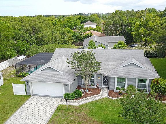 This wonderful home has everything you need! Adorable landscaping surrounds the yard. The paver driveway and walkway really brings life to the curb appeal and were recently resealed. Inside you will find great living space. Tile floors run through the family room and kitchen area, you will find comfortable carpeting in the formal living, dining, and bedrooms. The cathedral ceiling really opens up the home inside and the recessed lighting and plant shelving are a nice touch. The formal living and dining room greet you to the left and right walking in through the front door. The kitchen holds stainless steel appliances, a closet pantry and a great breakfast bar that overlooks the large family room. The master bedroom is a gracious size and holds a large walk-in closet. The master bathroom has an updated vanity and a walk-in shower. The guest bedrooms are a very comfortable size, they provide ceiling fans above, and excellent closet space. The back lanai is spectacular where more decorative pavers cover the floor. You have a pleasant covered area where you can relax out of the sun or take the wide steps down to the inground pool and cool off. The a/c unit is from 2018 giving you one less thing to worry about. This is a wonderful place to call home! Come and view today.