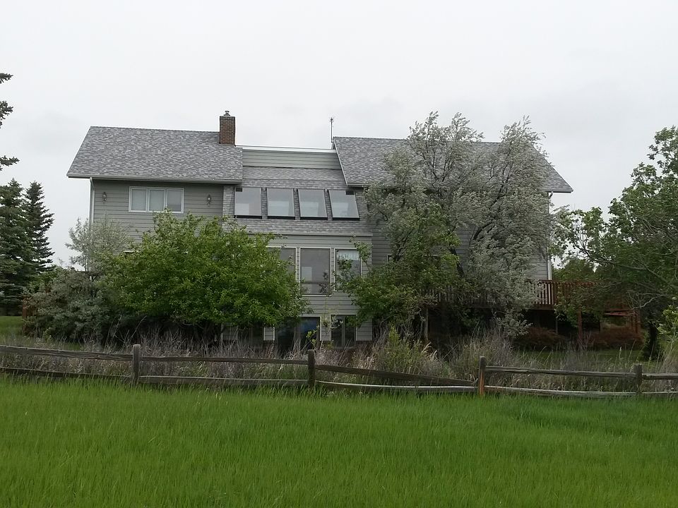 Open, spacious, custom built home on Ten acres surrounded by shelter-belt and panoramic views. Privacy! Hay Field! Fenced! Steel-Building for equipment or livestock. Two wells; one for home use, and the other for irrigation. Home has a spacious/open yet comfortable-functional floor plan. Enjoy both high, & low-tech engineering (such as passive solar). Home was made to work with the environment.