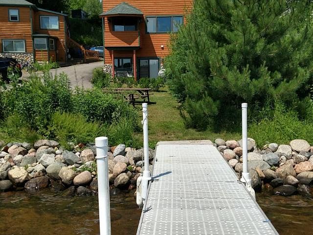 Lake Tomahawk Lakefront Condo with its own pier. This contemporary 3 story unit was built in 2011 and sits facing south overlooking the bay just down from the public boat launch. Enjoy the over 5800 acres of the Minocqua Chain. Selling turn key so you can start enjoying or renting it out. Sleeps 8 when you include the sleeper sofa in the walk-out lower level. Features main level Great Room with fully equipped kitchen, breakfast bar, dining area with patio doors to a covered deck and living area and half bath. The upper level houses the bedrooms and a large modern tile bathroom with big walk-in shower. Walk-out level functions as a rec room/lounge with kitchenette, bar and another bath with walk-in shower and laundry/utility room. Patio doors out to the water front and your own pier. Numerous large windows throughout for great views and loads of light. Shared firepit. Year round use fishing, boating and snowmobiling. Close to town and the conveniences of quaint Lake Tomahawk.