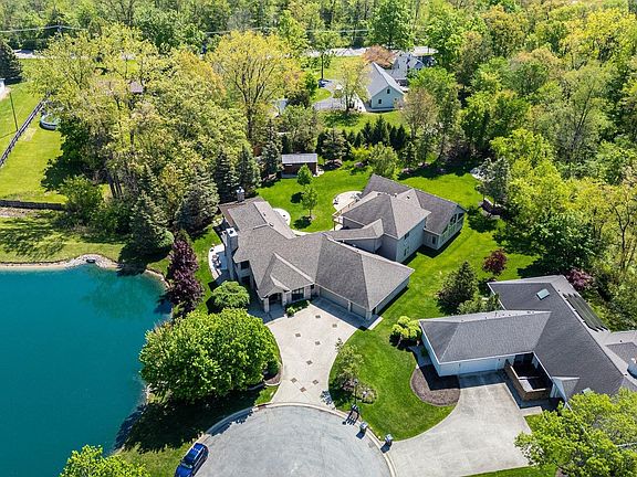 Wonderfully updated stately villa in the desirable Inverness Lakes Community! Nestled on a serene .60 acre lake lot, this 4-bedroom, 5-bathroom residence spans over 6,600 square feet and offers an unparalleled blend of luxury, comfort, and thoughtful design. At the heart of the home is a fully remodeled eat-in chef’s kitchen featuring Viking appliances, custom cabinetry, stunning granite countertops, a sophisticated tile backsplash, and an oversized island. The spacious great room boasts floor-to-ceiling windows overlooking a beautiful pond and is comfortably divided into a cozy sitting area with a brick fireplace and a large entertainment space perfect for hosting friends and family. Just off the foyer is a well-appointed den with built-in cabinetry, a desk, crown molding, and French doors. Also on the main level are a family room with wet bar, a home gym, a laundry room, and a guest bedroom with en-suite bath. A standout feature on the main floor is the impressive 27x46 indoor pool room a rare and stunning amenity offering year-round relaxation and recreation in your own private oasis. The upstairs layout is thoughtfully split and serviced by staircases at each end. The serene owner’s suite features a brick fireplace, a private balcony with lake views, and a completely remodeled bathroom with a tile walk-in shower, standalone soaking tub, double vanities, tile flooring, and a spacious 9x15 walk-in closet. Down the hall, through a bonus room/loft, are two additional Jack-and-Jill style bedrooms, each with walk-in closets and one with a private balcony overlooking the beautifully landscaped backyard. The covered patio is the ultimate outdoor retreat, complete with a floor-to-ceiling stone fireplace, rich wood ceilings, and ample seating for relaxing or entertaining. This space overlooks a lush backyard with multiple patio areas, a firepit for cozy evenings, and a 10x20 log cabin shed. Additional highlights include a whole-house generator, three HVAC systems, a heated 3-car garage with a bonus 14x20 storage/workshop space, zoned speakers, and lawn irrigation. This is a rare opportunity to own one of the premier villas in Southwest Fort Wayne!