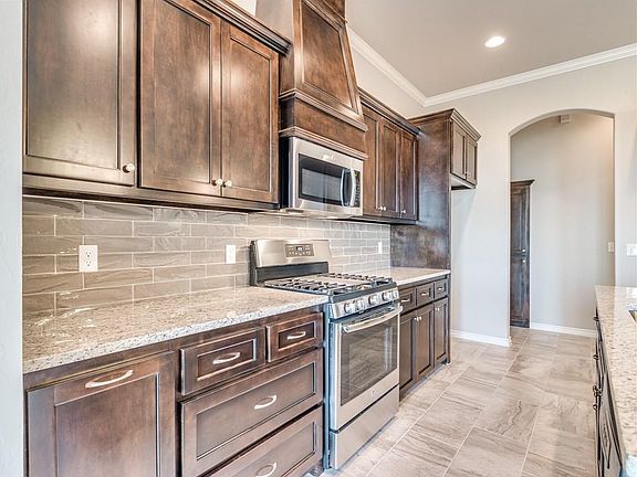 Beautiful, New Construction home close to shopping, dining, schools and just minutes from turnpike access! Designer Lighting, granite counter tops and upgraded tile through-out home. In the kitchen enjoy stainless steel appliances, stained cabinets, upgraded oven, designer back-splash, large pantry and a great breakfast bar. Huge, open floor plan. Both Bathrooms feature full tile showers (walk-in in the Master). The flex room has beautiful wood flooring and can be a study or second living area. This home is an OG&E Positive Energy Home which means double pane, low E vinyl windows (that fold in for easy cleaning), added insulation & high efficiency Heat/Air systems to save money on your utility bills year round. Full security system & Fully sodded/Landscaped w/an underground sprinkler system. Builder is offering up to 6000 incentive to be used towards upgrades &/or closing cost assistance. Full 1 year warranty from the builder means peace of mind as you enjoy your new home!