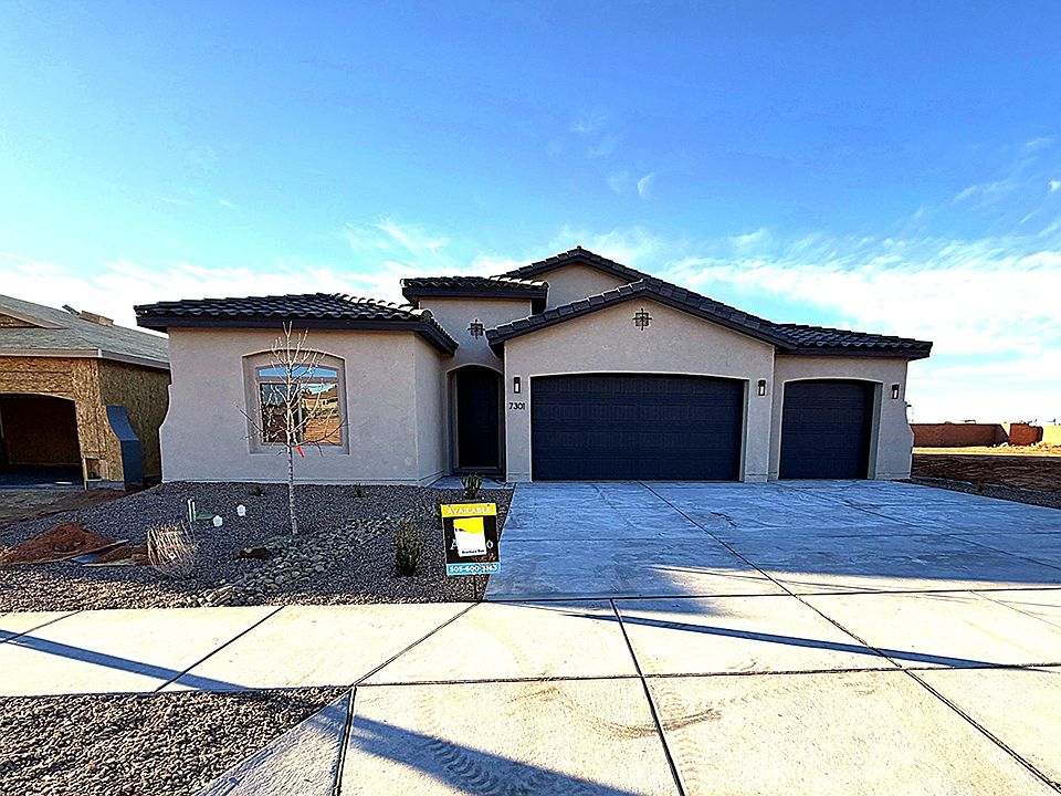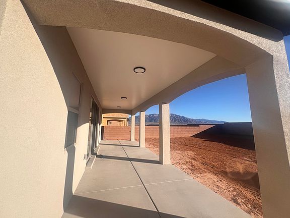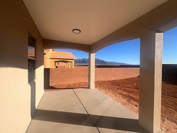 This new-construction gem is your shortcut to a custom home feel--without the wait. Thoughtfully curated upgrades elevate every inch, from the expanded great room with a cozy fireplace to the 12-ft sliding glass doors that bathe the space in New Mexico's golden sunlight. Step under the extended covered patio to enjoy quiet mornings or stunning desert sunsets.Inside, the 3-bedroom layout is complemented by a versatile flex room--perfect as a home office, playroom, or creative space. With 2.5 bathrooms and a seamless flow throughout, the design balances comfort and convenience, making it just as ideal for quiet nights in as it is for entertaining friends and family.