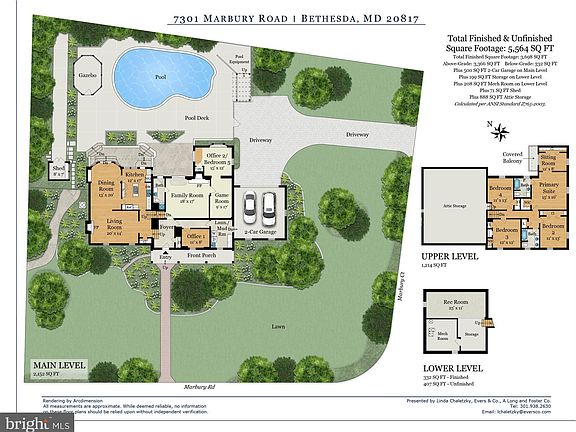 Please do not bring pets into the home.Please remove shoes or use shoe covers upon entry! The perfect live/work/vacation situation! This spacious split colonial has it all! Perfect for entertaining with a large living room and separate huge dining room as well as a beautifully renovated kitchen, the pool and patio area extend your entertainment space. There are four bedrooms up, including the primary suite with a sitting room and en-suite bathroom. The entry level has marvelously flexible space! There is a generously sized family room, game room/library and a dedicated office. An additional space could be either another office or the fifth bedroom. It, like the family room, entry level bath, kitchen and dining room all open to the pool area. The gazebo provides additional outdoor space for dining and entertaining. There are distinct places to work, to read, to play and to just be! And there are two fireplaces - one gas, one wood burning! The lower level and oversized garage offer exceptional storage space. Within walking distance to Pyle Middle School and Walt Whitman High School, as well as the Ride-On Bus, there is also easy access to downtown DC, downtown Bethesda and the beltway. This is a home not to be missed. (Bright MLS has updated the tax information since first listed in the system.)