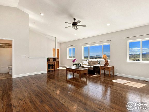 Come see the beauty and view this property holds. Perfectly placed, this 40 acre ranch sits with 360 views of mountain and open space. This peaceful acreage is only 15 minutes to the heart of either Fort Collins or Loveland. Wilderness and wildlife abounds as this sprawling property is inviting to nature lovers and outdoor enthusiasts. From the birds to the herds of elk you can experience all Colorado has to share. Built in 2014 this multi-generational home has very special accommodations. The main floor has 2 large bedrooms and grand open concept. Vaulted ceilings, SS Appliances, and expansive island are both inviting and comfortable for guests. Built with ADA needs in mind this home includes an indoor ramp, handicapable bathroom and kitchen access, full secondary master suite in the basement ready for anyone's needs. The mechanical systems include separate HVAC units for both up and downstairs, and a new water heater. Property utilizes a domestic well and large septic vault. Owners believe the have the best drinking water in the area, we'll let you decide. The outdoor space is full of great spaces and unmatched views. The 3200 sqft heated and plumbed shop gives you room for all toys and hobbies. The property has 3 travel trailer pads with septic hook-ups with electricity. Water spigot and unique watering system throughout the property. Generac generator included so you'll never be without power. Too many extras to list. You really must see the amazing views.