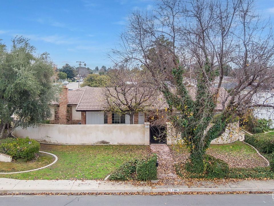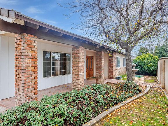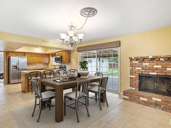 Discover your dream home in this well-maintained 3-bed, 2.75-bath corner lot, offering approx. 2,130 sq. ft. of living space. The front yard is enclosed by a block wall, providing both security and privacy. As you enter, a charming courtyard featuring a soothing fountain welcomes you. Inside is the inviting living space, where a cozy brick fireplace graces the breakfast area, flooded with natural light through an extended patio door. The kitchen features granite countertops, ample cabinet space, and newer stainless appliances. Enjoy the flexibility of a formal living room and a spacious family room, boasting a striking floor-to-ceiling brick fireplace. The primary bedroom offers an ensuite bathroom featuring a walk-in shower, tile countertops, and a spacious closet. Step into the backyard to find a covered patio for outdoor dining, a vast yard with mature trees for shade, a shed for storage, and a sizable covered RV parking/pad completes this home. Call today to schedule your showing!