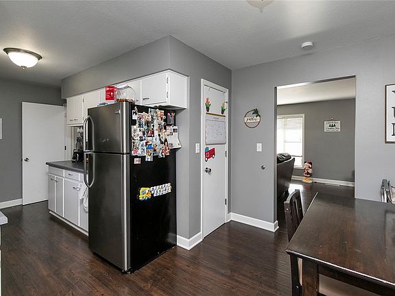with dining area and full bathroom. The kitchen has updated stainless steel appliances, white cabinets, large pantry for storage and a