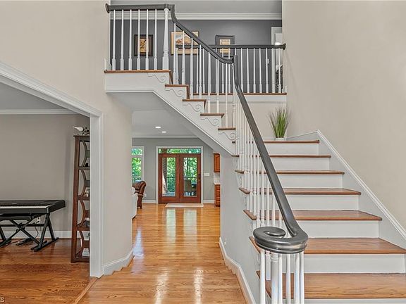 With nearly 2 acres on the Yadkin River, come experience the peace and serenity this home offers! The beautiful covered back deck provides some amazing sunsets, especially in the fall and winter when the leaves have fallen and the water is the perfect backdrop. On the main level you will find a large living room with a wood burning fireplace insert which is open to the kitchen. If you're working from home the additional living space can function as an office or sitting room to enjoy your favorite books and conversing with friends. The large kitchen island is the perfect space for every day casual meals while the dining room offer space for all the family for holiday meals. Upstairs you'll find 4 bedrooms including a large primary suite with gas fireplace and a luxurious spa-like bathroom. If you need space for family and friends, the basement also has a full bath and separate entrance. Book your showing today and experience it for yourself.
