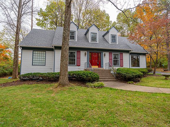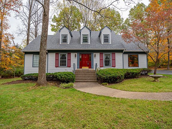 Check out this beautiful cape cod nestled on a quiet cul-de-sac in Crestwood. This home has a ton of space and 1.0 acre of private land with a wooded perimeter for all of the privacy you could need! Situated in Oldham county, this house is waiting on you to make it home with an eat in kitchen, dining area, master suite and two living areas on the first floor! The second floor features 3 additional bedrooms and 2 additional full baths. The basement has plenty of space to convert into another living area, workshop, or whatever you might need! Schedule your showing today to see how perfect of a fit this one is for you.