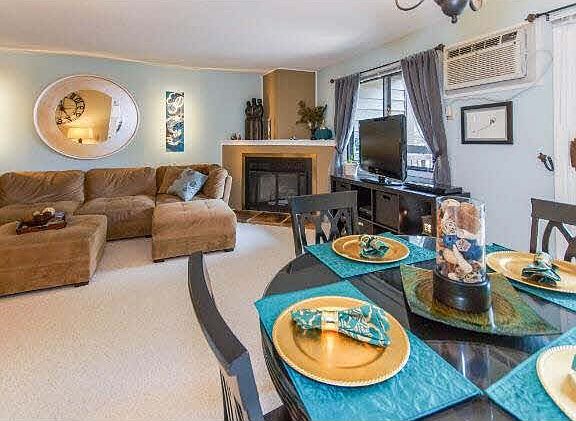Spacious south facing condo w/large deck! 100% move-in ready! BIG 14 x 10 bedrms, huge living rm w/impressive FP, Newer washer & Dryer, tons of storage, steps to Bush Lk rec. & trails! HOA fee inclds Cable, heat, water & pool-extra storage locker dwn hall