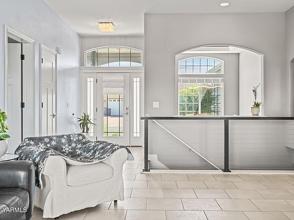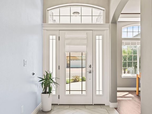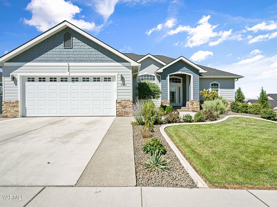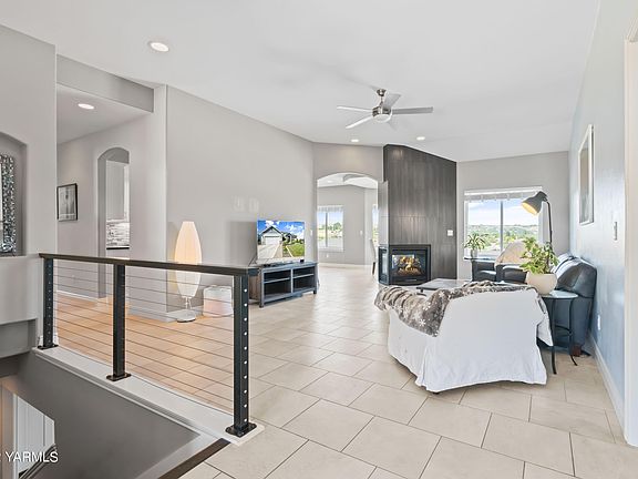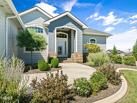Enjoy the panoramic views from this custom-built home with lovely modern finishes. Formal entry leads you into a vaulted living room with 3-way fireplace. Sitting adjacent is a beautifully finished kitchen with two-tone cabinets, quartz counters and formal dining room. The Primary suite features a private deck to enjoy the view and a spa like bathroom with jacuzzi tub, walk in shower, double sink vanity and built-in make-up sitting area. The lower level features a large family room, additional bedrooms, full bathroom, flex space room and large bonus storage room for outdoor items. Enjoy the hot tub on cool evenings and use the convenient outdoor shower area to rinse off. Beautifully finished with professional landscaping, water feature and additional off-street parking!