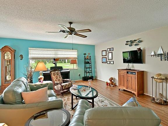This completely remodeled 2 bedroom 2 bath Village Green villa is a GEM. The open kitchen has all new appliances with a built in stove top and separate built in oven and microwave. The distressed hickory solid wood cabinets complement the granite counters and the Tuscan Olive laminate flooring. The master shower has been re-built with all new green board and tile and it also has been enlarged for your comfort. Both baths have new vanities and countertops. Newer windows were installed and the window treatments are Roman Shades through out. A new tile roof was installed in 2010. Come and enjoy either the Florida Room, which is also air-conditioned for your comfort if you so desire or the outdoor patio.