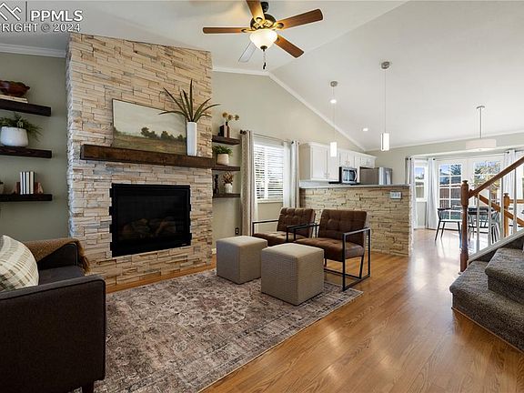 Don't miss your chance at this immaculate 2 bed 2 bath home located minutes from Ft Carson and shopping in Fountain! Greet friends and family that come to visit on the covered front porch, complete with a porch swing that is the perfect spot to unwind at the end of a long day. The floor-to-ceiling stacked stone gas fireplace creates a cozy warmth that will be perfect on these upcoming snowy winter days. Gorgeous kitchen is fully equipped with stainless steel appliances and convenient french doors that lead to the plush green grass and covered back patio that is perfect for summer BBQ's. Heading upstairs you'll find two spacious bedrooms and a completely updated full bathroom. Lower level offers a secondary living room/flex space that could be used as a family room, office, or workout area. Recently remodeled lower level bathroom is great for visiting guests. And for those with an Electric Vehicle, 220v service in the garage is already installed to make charging a breeze! Homes this nice don't come around often, so schedule your showing today!