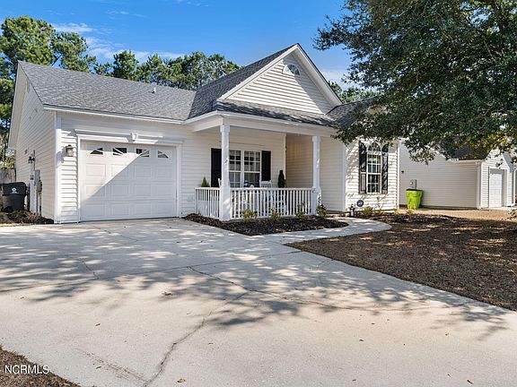 Welcome to this beautifully maintained home in a great location. 3 miles to Mayfaire shopping and restaurants, and 5.5 miles to Wrightsville Beach- all with low HOA and no city taxes! This one level home features a new roof and HVAC unit replaced in 2020. Walk up to the rocking chair front porch, and through the doors you will LVP flooring throughout. 2 bedrooms, one being used as an office space and shared bathroom. Spacious open floorplan with updated lighting fixtures. The kitchen has white cabinets, tile backsplash and a pantry. Primary bedroom featuring large walk in closet and recently updated primary bathroom featuring beautiful, tiled floors. Outside has a great grilling patio complete with a newly pour concrete deck. Large backyard and new storage shed that conveys.
