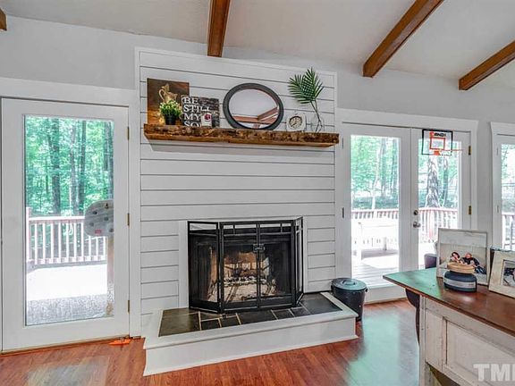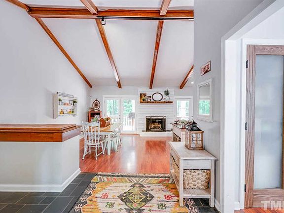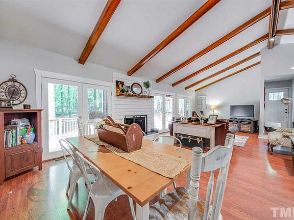 Beautiful transitional home, with HUGE lot, minutes from I-540, RTP, and I-40. Home has had extensive updating, paint, bathrooms, kitchen, wiring and a whole lot more. Beautiful finishes throughout. Open dining and living and 3 large bedrooms. Huge deck overlooking wooded backyard. Large 3 car garage/shop with finish-able bonus or office space above. Have all of this, feel like you are living in the country and be a short distance from all the amazing things Raleigh/Durham has to offer.