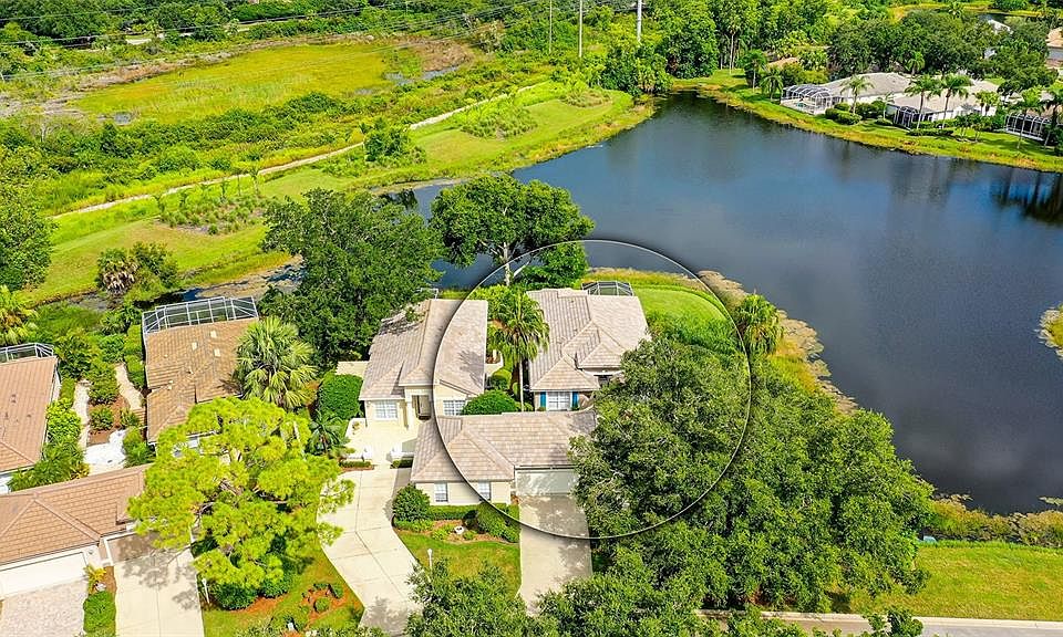 Turnkey Home in University Park Country Club! Simply pack a bag and move right into this stunning home with breathtaking water views on two sides, safe from storm surge threats. This home never lost power during hurricanes Helene and Milton, thanks to its whole-house generator, which ensures comfort and food preservation. The new hurricane shades provide excellent protection from wind and rain. Enjoy your morning coffee in one of three outdoor spaces: a private courtyard at the entrance, an oversized lanai with a heated spa, or a private screened patio next to the kitchen, perfect for grilling, dining, and reading. Sports enthusiasts can choose from world class golf, pickleball, tennis, and croquet. Leagues and events abound. University Park Country Club offers 27 holes of golf, 11 Har-Tru tennis courts, pickleball, a fitness center, and croquet. A social membership is required. This well-maintained 2-bedroom, 2-bathroom home with a den features: A new roof (2023), new lanai hurricane shades, hardwood floors throughout, and a den equipped with a custom desk. Additional highlights include: A newer Trane A/C, Sonos sound system controllable via phone or laptop, new hurricane impact dining room windows, and a full-house generator. HOA fees cover yard maintenance, high-speed internet, and cable service. A list of included furnishings is available upon request. Centrally located, University Park Golf and Country Club is just minutes from University Park Town Center, with over 300 stores and restaurants. I-75, St. Armand's Circle, downtown Sarasota, and Lido and Siesta beaches are close providing abounding entertainment and convenience.