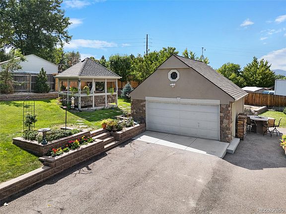Welcome to this charming and historic farmhouse in one of the most desirable locations in Arvada, Colorado! Situated in a quiet cul-de-sac at 72nd and Wadsworth Blvd, near the Indian Tree Golf Club, this original 1950 farmhouse sits on a generously sized lot, offering both privacy and character. Elevated slightly on a hill, the property features two majestic honey locust trees providing natural shade over a custom-designed deck. The outdoor space is perfect for entertaining, complete with granite countertops, a built-in gas grill, skillet, and Green Egg smoker, plus a gas line ready for a fire pit. Enjoy several beautiful gardens, a dedicated compost area, and relax under the permanent pergola, which houses a hot tub—ideal for unwinding after a long day. Inside, this two-story home offers 3 bedrooms, including a main-floor primary bedroom for convenient single-level living. Upstairs, you’ll find two additional bedrooms, one with a large sitting area that offers a cozy retreat. The home is efficiently heated with a boiler and optional corn pellet stove, and it features a natural gas tankless hot water heater, ensuring comfort and energy efficiency. The spacious basement is ready for the addition of another bathroom and includes a secure, private room perfect for storing valuables or creating a quiet workspace, complete with ventilation. With a detached 2-car garage and so many unique features, this home is a rare find—offering a blend of historic charm and modern conveniences in a prime Arvada location. Don’t miss your chance to own this special piece of Colorado history!