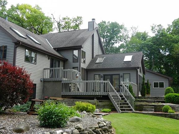 Custom Built Home on Beautiful 4.5 Acre Wooded Parcel with Hiking Paths Boarders to Conservation Area. Fantastic Layout featuring Huge Family Room with See Through Fireplace and Soaring Vaulted Ceiling. Spacious Kitchen with Dining Area, Large Master Suite with Whirlpool Tub & Separate Shower, Beautiful Sunroom to enjoy the Fantastic Views. 3 Bedroom, 3.5 Baths, 3.5 Car Garage. Amazing Indoor Pool House with Full Bath, Hot Tub. Large 80 x 40 Pole Barn with Concrete Floor. Wildlife just out Your Back Door!