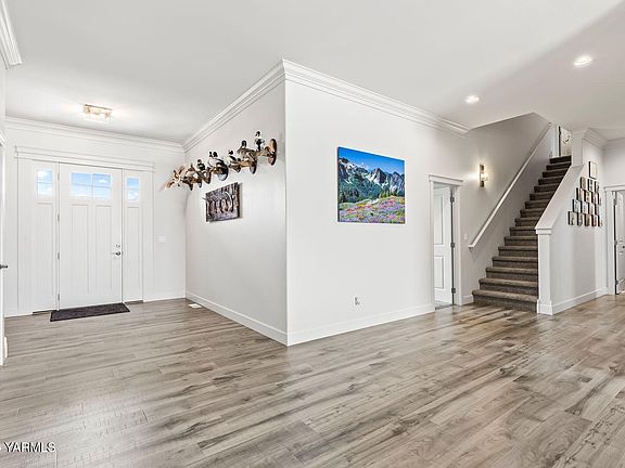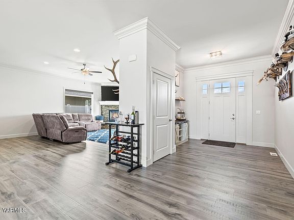 Step into this beautifully designed, custom-built dream home, where style meets functionality. With 10' ceilings and a spacious open-concept layout, the kitchen, dining, and great room flow seamlessly together--perfect for modern living and entertaining.The great room features a cozy gas fireplace opens up to a covered patio, thoughtfully wired for sound and TV--ideal for relaxing evenings or weekend gatherings. The kitchen is a true standout, offering an abundance of counter and cabinet space, crisp white cabinetry, stainless steel appliances, granite stone sink, and room for a large dining table.The primary suite is a retreat of its own, complete with a walk-in tile shower and a generous walk-in closet. Upstairs, a versatile bonus room with its own bathroom and mini-split system could easily serve as a junior suite or guest quarters.The fully insulated 3-car garage includes a convenient man door to the backyard. Outside, the yard is freshly sodded, fully fenced, and features an extended patio pad ready for your hot tub.The desirable West Valley neighborhood is perfect for evening or morning walks and just minutes from Apple tree Golf course.This home truly has everything you've been dreaming of--move-in ready and better than new!