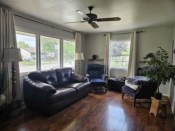 Welcome to this 3 bedroom, 1 bath ranch home offering 872 sq ft. Situated on a corner lot, this property features a private fenced backyard—perfect for outdoor activities, pets, or gardening. Enjoy relaxing or entertaining on the large deck, and take advantage of the included storage shed for your tools and equipment. Inside, you'll find beautiful hardwood floors in the living room and all bedrooms, adding warmth and character to the home. Ceiling fans enhance comfort throughout the space. The functional kitchen comes equipped with all appliances—including refrigerator, stove, washer, and dryer—making this home move-in ready. A highlight of the property is the detached 2.5 car garage with opener providing ample space for vehicles, storage, or a workshop. Don't miss this great opportunity for comfortable living in a convenient location!