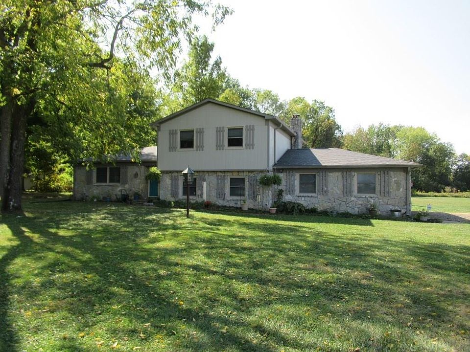 Hard to find large home on small acreage in desirable Triton School System. Brand new roof, newer windows and bathrooms. Hand scraped hardwood flooring on main floor. Lower level is large family area with woodburning fireplace, tile floors and new full bath. Upstairs accommodates 3 bedrooms and 2 full baths. Master has his/hers closets. Large patio in back for outside entertaining. Incredible lot with mature trees. Filled with peace and quiet. Only 10 minutes from Indy.