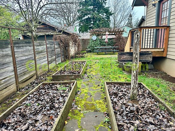 This beautiful 3-bedroom, 1-bathroom house features: * Built-ins from original 1923 house. * Gorgeous wood floors throughout. * Spacious, remodeled large kitchen with custom walnut cabinets, butcher block countertops, eco- friendly Marmoleum flooring and plenty of storage. * Central air conditioning. * Spacious loft-style bedroom upstairs. * Detached two-car garage with brand new engineered storage trusses and a new roof. * Private, fully fenced backyard. Great location! Walk to food carts, restaurants, coffee shops, parks and Roosevelt High School!