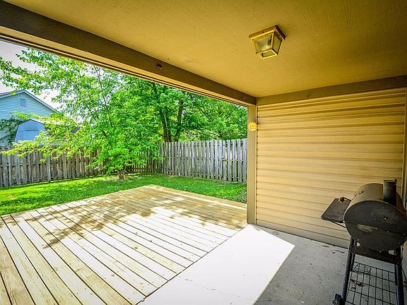 All new carpet and interior paint; large family room with fireplace; covered patio attached to deck accessible from master bedroom and family room; ceramic tile throughout kitchen and both baths; two car attached garage with remote openers; new stainless steel appliances: range, refrigerator, dishwasher & disposal; corner lot with privacy fence surrounding backyard; storage shed. HVAC system less than 1 year old; roof less than 5; new countertops in the kitchen along with faucets & knobs.