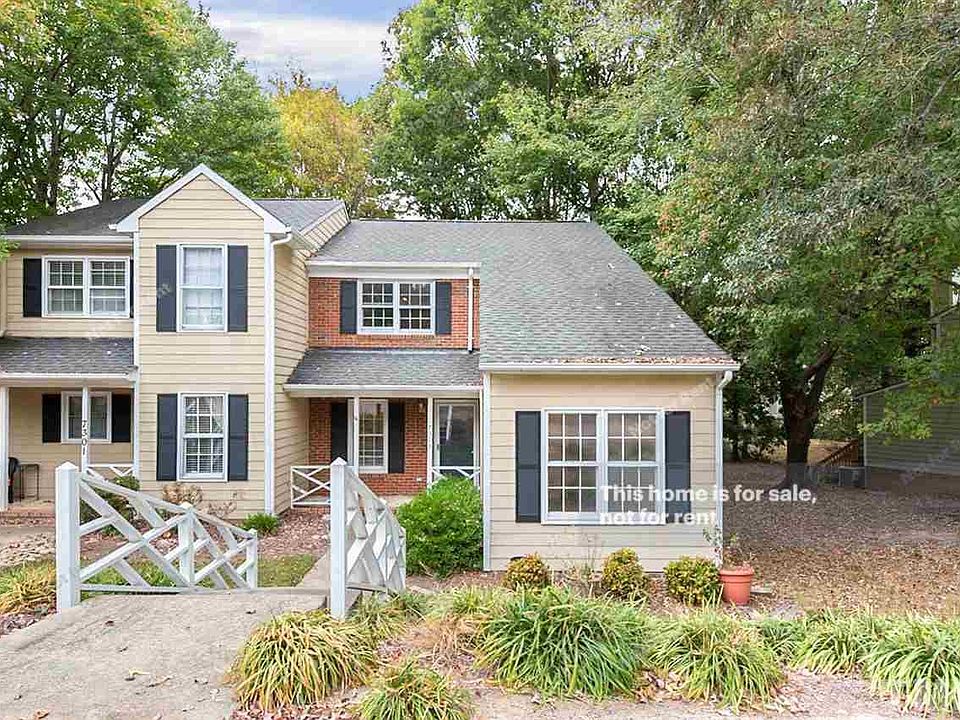 This Raleigh two-story offers a deck, a fireplace, ceiling fans, and a master bedroom walk-in closet.