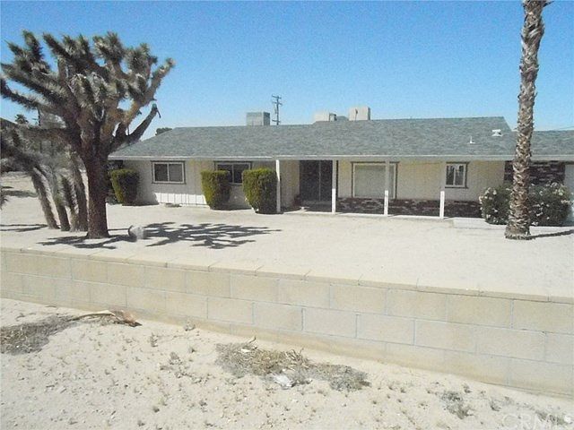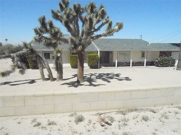An inviting large cement covered front porch leads to double door entryway. OPEN! OPEN! That's the feeling this 4 bedroom.2 bath home inspires as soon as you step into spacious tiled entryway & see grand great room, formal dining room, a peek at breakfast nook & wide hallway to bedrooms. A lovely designed & functional home, with tiled flooring throughout (except carpet in 3 of 4 bedroom). Plantation shutters adorn all windows & slider in tiled great room, large enough for 2 separate seating areas. Cozy breakfast nook, breakfast bar & multi cabinet U shaped kitchen, complete with stove, refrigerator, dishwasher, microwave. Lots of counterspace. For large dinner parties, formal dining room with chandelier is also adjacent to kitchen. Down spacious hallway with storage cabinets along one wall are 4 bedrooms. Two are carpeted, ample closet space, windows. One bedroom is tiled, perfect for office, studio, playroom. Full roomy tiled bath across hall. Double door entryway leads into en suite master bedroom with walk in closet, roomy remodeled 3/4 bath, enough room in bedroom for sitting area, king sized bed & dressers. Large window with panoramic view. Out slider from great room is wrap around Aaron Scott designed brick patio with block privacy wall, landscaped, amazing view of Marine Corps Base, desert, valley to east, plenty of room for patio furniture &outdoor kitchen/BBQ. All new dual pane windows, extra insulation, A/C & evap cooling, ducted heating, new roof, 2 car garage.