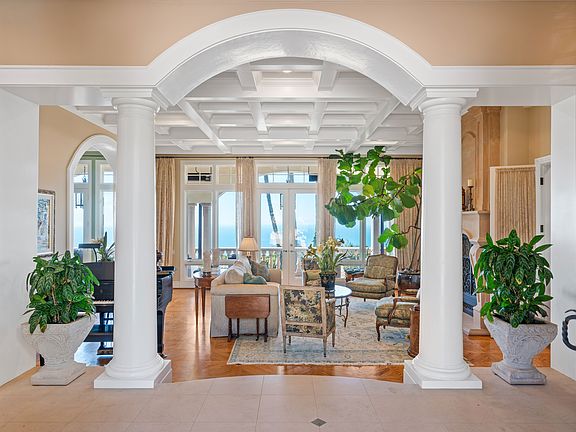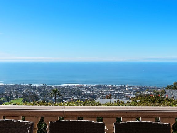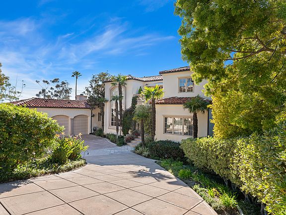 Jetliner 270 degree views that encompass the Pacific Ocean, La Jolla Country Club, Catalina Island and beyond are showcased by this extraordinary Mediterranean Villa. Nestled at the end of a long private driveway on a quiet serene street, this exquisite fully-furnished home boasts privacy and a seamless indoor-outdoor flow. Enter through grand double doors into the foyer, complete with soaring ceilings and picturesque ocean views. The formal living room boasts coffered ceilings, a cozy fireplace, a wet bar and French doors that open to the expansive terrace- the ideal place to entertain on all scales. Awash with natural light throughout, the home offers additional highlights including a formal dining room, cozy family room with vaulted beamed ceilings, and gourmet chef's kitchen featuring top-of-the-line appliances, sleek cabinetry, breakfast area and a spacious island - perfect for culinary enthusiasts. The primary suite rivals the finest resorts, and features a variety of sitting areas, statement fireplace and French doors that open to a private balcony with breathtaking ocean views. Relax and unwind in the dual spa-like en-suite bathrooms, complete with a sumptuous jetted tub, custom walk-in closets, bespoke shoe-room and two home offices - outfitted with sensational wainscoting and custom built-ins. Five additional secondary bedroom suites offer the ultimate privacy for guests.