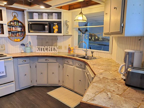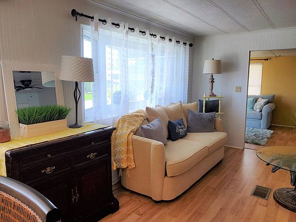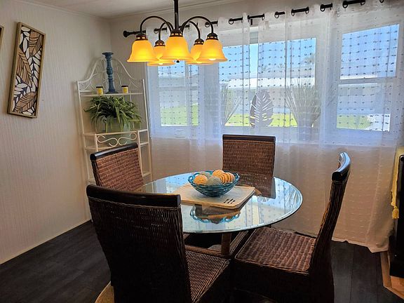 Just Listed $57,500 Partially Furnished. 4 lanais? Yes. Waterfront Yes. Beautiful interior and exterior. Yes. This 2,000 sq ft home is nestled on a secluded small lake with only nature and birds to enjoy from your backyard pergola and fire pit. Lush tropical foliage adds to the charm of this very special property. Truly a one-of-a-kind. Plus, it's only a short walk to Colony Cove's most beautiful pool, clubhouse, gym, and tennis courts. New Roof. New furnace and a/c. This house uniquely combines Beach house, backyard privacy set within gulf coast natural beauty, and quick access to I-75 and Anna Maria Island, Bradenton Beach and Sarasota. This is a spectacular large 1980 remodeled home with two bedrooms and two bathrooms. When you enter the home, you enter into an open floor plan. Nice circular kitchen with all your major appliances. Nice dining area and large living room. This space allows you plenty of room to entertain your family and friends. Just off the living area is another large room. This room could be a 3rd bedroom, office, craft room or an office. Plenty of room to make it your own. Down the hall from the living room is the updated guest bathroom and guest bedroom. The guest bedroom is spacious and easily accommodates a queen bed and dressers. Nice walk-in closet. The large king size master suite with a walk-in closet. The ensuite bathroom has been updated with a step-in tiled shower with sliding glass doors. This master bedroom has a cozy adjoining room. All floors have been completely done. Washer, dryer & storage are all enclosed. This is a lovely large home that comes partially furnished. Call today to make this your Florida dream home! Colony Cove is an age qualified (55+) five-star resort community of manufactured / mobile homes. The "Cove" boasts 5 clubhouses, 5 heated pools, a riverfront pavilion and private fishing pier, a private marina, a fenced dog park (very pet friendly), tennis, shuffleboard, new pickleball courts, 2 new fitness rooms, 24-hour patrol, clubs for every interest, and much more. There are daily planned activities throughout the park. Bottom line, if you get bored here, it's your own fault!! The lot rent in Colony Cove is based on the homes' location. While the monthly rent may not be the lowest around, it's by far the best value for the money. Not only does the monthly rent cover all of the amenities of the community listed above, it also covers almost all other monthly expenses such as; water, sewer, trash pickup, all property taxes, lawn maintenance. . .pretty much every monthly expense except electricity and internet. The current lot rent on this home is estimated at $1110.49 per month. All listing information given to us is considered appropriate and reliable but always recommend Home Inspections by independent companies who have a background and thorough understanding of manufactured homes. We cannot guarantee the accuracy of information given to us or the condition of the home. Lot rents are determined by the community office not our company.