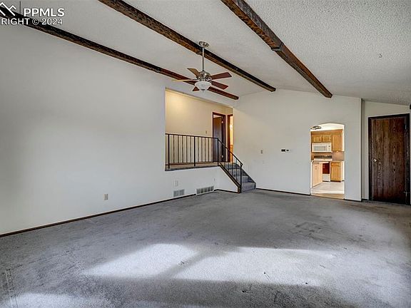 Welcome to this well maintained split-level home ready for move in! As you enter the home you will admire the vaulted ceilings with dark wood beams giving the home an “at home feel.” As you continue upstairs you have a bedroom to your left and to the right is your master bedroom adjoining bathroom featuring personal his and hers split vanity, personal linen closets, a walk-in closet and a full bathroom. From the main level, from the living room you walk into the kitchen/dining room. The kitchen is semi updated with updated counter tops, backsplash and a standing pantry. On the lower level you have a full bathroom, bedroom and a huge family room featuring a wood burning fireplace that is currently capped. Endless possibilities with the space provided. In the basement you have plenty of storage room, potential to finish or use as a workshop. Outside you will speechless over the landscaping that has a beautiful touch to showcase this home. There is plenty of space for extra parking, storage and gatherings. This home is located near schools, dining, shopping and about 10 minutes to Ft. Carson. Come by and check out this home! It’s a beauty!