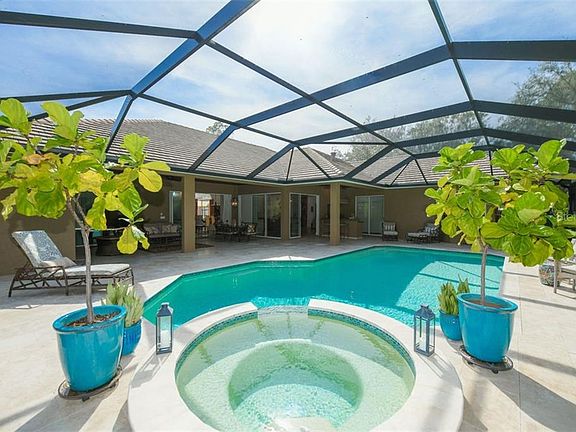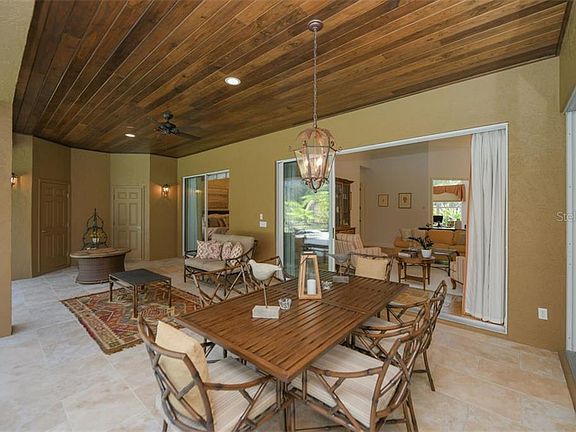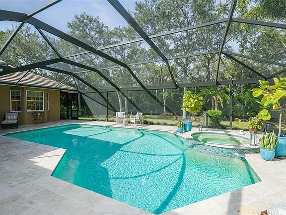 A stunning statement of refinement and comfort, this impeccably designed and COMPLETELY RENOVATED estate home is situated on a quiet cul-de-sac adjacent to the Palm Aire Country Club on nearly an acre homesite. Rich with architectural details and exquisite finishes including custom built-ins and moldings, this Najjar built masterpiece is further enhanced with a fabulous open layout and an elegant balance of formal and casual spaces. Entertain in style from the living and dining rooms and effortlessly refine your favorite recipes in the updated kitchen, with a separate beverage area. The large island with seating unites with the family room which includes custom cabinetry, gas fireplace and double desk/office/homework nook. Privately located, the spacious master wing showcases rich wood floors, 2 spacious fully outfitted walk-in closets and sliders to the lanai, while the master bath offers dual vanities, garden tub, large walk-in shower and beautiful marble detailing.to complete the serene feel. There are 2 additional spacious guest suites with fully renovated ensuite baths as well as an office/den and large laundry/craft room with built-in desk and cabinetry. The outdoor living area features a NEW TRAVERTINE DECK, an inviting and expansive HEATED SALTWATER POOL & SPA that was redone in 2018, stunning OUTDOOR KITCHEN with LYNX GRILL, vented hood and handmade tiling, wood paneled ceiling treatments, outdoor shower, cabana bathroom and air conditioned pool storage room. Enjoy the private setting from your CLEAR VIEW BRONZE CAGE while overlooking the lushly landscaped yard with mature oaks, FRUIT TREES (lemons, limes, clementines, plantains and bananas), gazebo and 10'+ privacy berms on all sides, as well as an expansive dog friendly fenced yard, creating the perfect sanctuary and the ultimate in resort style living. Additional features include a 4 CAR GARAGE with extra storage, 2 Trane A/C units with HEPA filtration systems, NEW ROOF with hand honed custom tiles, FOAM INSULATED ROOF/ATTIC and NEWER WATER HEATER (2015). With top rated public schools, competitively priced private schools, LOW TAXES, NO CDD fees, LOW HOA and NO required Country Club membership, as well as easy access to all Sarasota has to offer and airports in both Sarasota and Tampa, this move-in ready home is not to be missed!