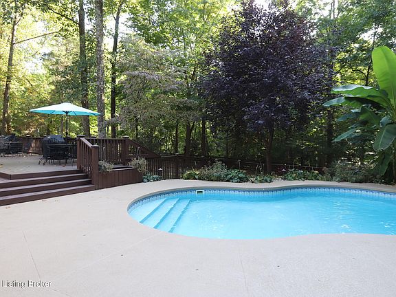 Here's the home you've been looking for! This spacious ranch style home is nestled on an acre of mature trees. Enjoy the autumn foliage and cool breezes on the deck or screened in porch. Just grab your favorite beverage and relax. The inground pool is adjacent to the deck and has a waterfall, perfect for those humid summer days. Inside the inviting foyer area is adjacent to the formal living room (currently used as an office). The formal dining room is perfect for those upcoming holiday dinners. You'll love the family friendly eat in kitchen with center island, granite counter tops and sunlit breakfast nook. Cozy up to the fireplace in the great room on those brisk autumn evenings. The primary suite has private bath with a whirlpool tub, separate shower and double bowl sink. There are two additional bedrooms, a full sized laundry room and a full bath on the main level. The lower level features a family room with fireplace, recreation area with pool table (can remain), bar area and two unfinished rooms with walk in closets (one currently used as bedroom without egress the other has a hairdresser sink in it). There is a detached 32x14 shed for additional storage. Located in Pewee Valley (Crestwood mailing address). Minutes to dining, shopping, schools and I71. Seller requests 24 hours to respond to offers.