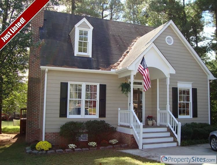 Beautiful curb appeal including landscaping and neutral exterior paint. First Floor Master Bedroom home in great neighborhood very close to 540/Triangle Town Center. Spacious Living Room w/ Sloped Ceilings give an open feel. Kitchen has nice sized eat in area for dining w/ access to welcoming deck that gives a feel of privacy.