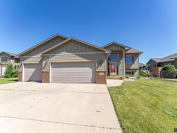Discover the perfect blend of comfort and convenience in this split foyer home, offering 4 bedrooms, 2 bathrooms, 2 spacious family rooms, and a 3-stall garage, situated in one of Sioux Falls' most desirable neighborhoods - Galway Park! The large living room boasts vaulted ceilings, creating an open and airy atmosphere. The kitchen seamlessly flows into the dining room, which features a sliding door leading to a fully fenced backyard. The primary suite offers a walk-in closet, a pass-through bath, and ample space for a king-size bed. All three additional bedrooms also include walk-in closets. The exterior is just as captivating, boasting a great yard, a sprinkler system, a spacious deck perfect for entertaining, a hot tub for unwinding, and a kids' playset for endless fun.