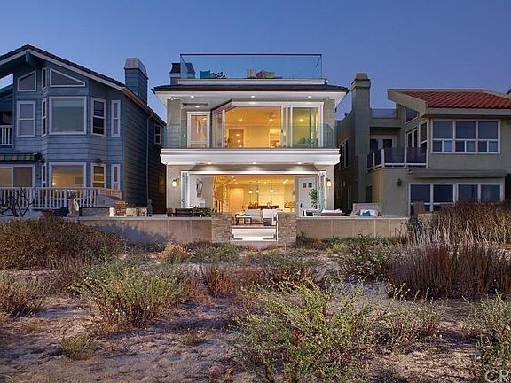 This stylish Eastern Seaboard oceanfront home, on the picturesque sandy beaches of West Newport, is steeped in Cape Cod character and charm and brimming with all of the most desired amenities for modern beach living. With spectacular views of the ocean, crashing waves, Catalina Island and sunsets, the home is privately located near the popular River Jetties surfing, volleyball and swimming beach. The lower level of the home features an open floor plan with an oceanside wall of floor to ceiling bi-folding doors, large living room with a wetbar, built-ins, and fireplace, an island kitchen with marble countertops, gleaming white cabinetry, Viking stainless steel appliances, Sub-Zero refrigerators, freezer, and drink drawers, a wine refrigerator, full limestone downstairs bath, a waterside patio and a two-car attached garage. The second level of the home features a luxurious oceanfront master suite with fireplace, built-ins, and a limestone bath with a Jacuzzi tub, Steam shower, and marble countertops; there are 3 additional bedrooms, one with an ensuite bath and two that share a Jack-n-Jill bath. The third level of the home features a huge rooftop deck with stainless steel appliances, new 6-person hot tub, and more. The palette of finish materials includes limestone, marble, granite, stainless steel, oak hardwood floors, and walls of glass. Technology includes an elevator servicing all 3 levels, Reverse Osmosis water filtration system, Lutron Electronic system, Surround sound, and home security. Property is available for short term lease. Property is available from 1 month to 1 year. Property is rented Fully Furnished. However, it can be rented with or without furniture if desired.