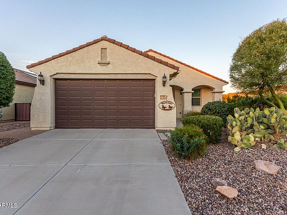 Welcome Home!!! This gorgeous 2 bedroom 2 bath home at the 55+ active community of Anthem at Merrill Ranch is in a fantastic location. Close to restaurants, shopping, parks, golfing at Poston Butte-Florence Golf Club & easy access to Hunt Hwy. As soon as you step into this home, you can see the pride of ownership with all that has been done. You'll love the open concept floor plan of this home. Your kitchen offers stainless steel appliances, granite counter tops, an island/breakfast bar for extra prep & storage, a pantry & stunning crown molding cabinetry. Your spacious master suite offers a plethora of natural light from your bay windows, a walk in closet, dual vanity & a walk in shower. This corner lot home also offers paid off solar, upgraded ceiling fans, plantation shutters, diamond laid tile flooring, a den/office area to utilize, along with a front security door for your privacy, a 2 car garage with epoxy flooring, a water softener, a tankless water heater & cabinets for extra storage & organization. Your low maintenance backyard offers a covered patio with an extended pergola & pavers.