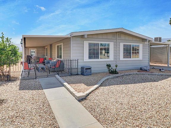 Discover modern elegance amidst desert beauty! Welcome to a home where sophistication pairs harmoniously with comforts suited for a discerning palate. This newly listed turnkey home is a testament to style blended artfully with functionality, crafted to welcome those who appreciate a refined yet inviting living space. The home has been beautifully remodeled, transforming each corner into a meticulous statement of modern living. The primary bedroom serves as a peaceful sanctuary featuring ample space and an en-suite bathroom, offering privacy combined with a touch of luxury. This 3-bedroom rarity also includes a casita with a bathroom and additional sleeping area, perfect for grandchildren visits! The living room, bathed in the soft cascade of natural light, presents a perfect environment for relaxation or hosting friends and family, highlighted by tasteful and elegant furnishings. At the heart of this home, the kitchen is equipped with top-tier appliances and granite countertops, easily flowing into the dining area for cherished gatherings. The allure of this home extends to its exterior, where a spectacular outdoor setting promises enchanting evenings and serene afternoons. The custom outdoor grill and sink are ready for your seasonal gatherings, set against the dramatic backdrop of mountain vistas. The roof is newer & professionals have refitted the piers, pads and braces of the foundation. To top it off FREE golf is included in low monthly dues. Free internet and trash pickup, clubhouse with a restaurant, bar, 18-hole executive golf course and pro shop, three community pools, hot tubs and exercise room. Add a billiard room, card room, indoor shuffle board, tennis courts, pickle ball courts, library, recreation room, and nearly 40 clubs to realize all that PDGCC offers for your perfect desert home. This incredible home won't last long! Please call for a showing.