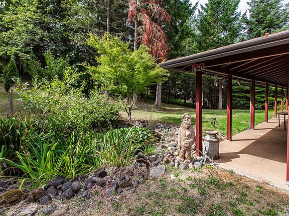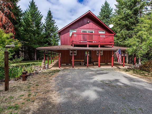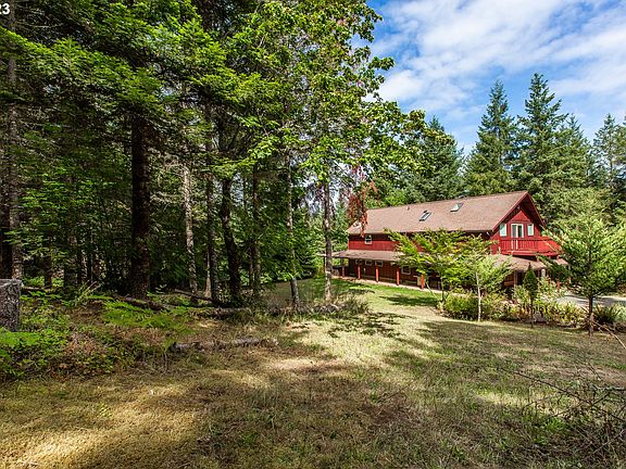 NEW IMPROVED PRICE!!! This property is your very own private lodge with so many amenities! Featuring a 2000 built home with a wrap around porch, hot tub, fruit trees, water feature, gazebo and panoramic views! Inside you will find vaulted ceilings, new flooring, ductless heat pump, an open floor plan, large kitchen with pantry, lots of counter top space, new appliances, loads of natural light and a cozy wood burning stove. Upstairs there is a large primary suite with vaulted ceilings, skylights, ceiling fans, dual closets, private balcony, en-suite, built ins and a loft. This property comes with over 44 acres of land in between the Coastal Fork of the Willamette river and backing up to BLM land with densely planted mature Douglas Fir timber. There is an abundance of wildlife including elk, deer, and turkey. This property qualifies for LOP hunting tags and you can fish from your own riverbank! There are two large shops with over 3,000 square feet of space spreading over 5 bays, with room for 10 or more cars/trucks. There is plenty of heavy equipment or RV storage, 220 volts in each along with working space. This property has endless possibilities to it, is move in ready and waiting for you.