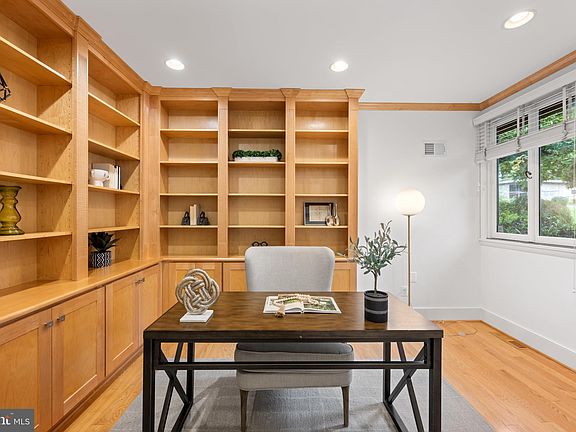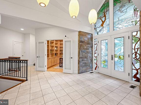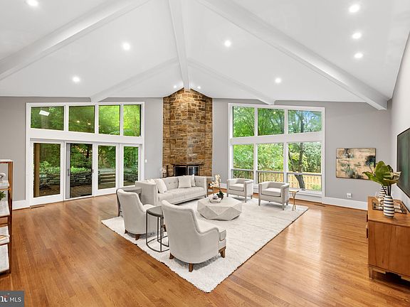 Expansive contemporary residence in the heart of Bethesda's Bannockburn Estates. This home has been meticulously cared for by the current owners and it shows in every detail. From the second you step through the stained-glass entryway into the main foyer, you can see light and nature from almost every room in the house. The main family room has an extraordinary double height ceiling with a centered stone fireplace that draws your eye. This home was built for entertaining, with the main level offering a large formal dining room, a wet bar room, family room with fireplace, gourmet chef's kitchen with views of the garden, ample cabinet space, 2 sinks, double wall ovens, 5-burner gas range on island, Sub-Zero refrigerator, plus a 3rd prep sink in the butler's pantry/mud room area. Additionally, there is a home office with built-ins, half bath, and two large bedroom suites - both with attached baths. This includes the primary bedroom with a private balcony and spa-like primary with soaking tub, steam shower, full wall double vanity with marble top and large walk-in closet/room that would make anyone jealous. The walk-out lower level has 2 additional bedroom suites, both with attached baths (one with private exterior entrance), a 5th bedroom, gaming room, large rec. room with wet bar, mini fridge and wall of built-ins and fireplace, a cedar storage closet, wine storage space, 2 utility rooms and a large extra storage room - this home does NOT lack for storage space! The laundry room has a utility sink and extra refrigerator plus exterior entrance, and adjacent to a 2nd half bath. The outdoor space is like a retreat with a small pond, expansive stone terrace, large deck and private backyard. The attached 2-car garage has an electric car charging port and there is tons of extra parking in the circular driveway. This house is very private, yet close to all the conveniences of downtown Bethesda and Washington, DC.
