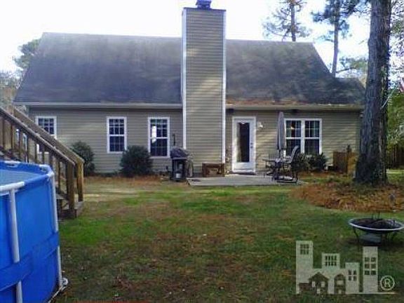 Approved Short sale! Wonderful open layout! This home features 4 bedrooms, 2 bathrooms with a bonus room, walk-in master closet, bay window in 2nd bedroom, wood burning fireplace, and ceiling fans. Floor plan includes 3 downstairs bedrooms, 1 upstairs bedroom adjacent to roomy bonus room perfect for a teenager or guests. Roomy kitchen conveniently opens to combination dining area which opens to the family room. Enjoy the North Carolina summer sun swimming in the above ground pool or relaxing in the shade in the large, fenced in back yard. Conveniently located near shopping and a short drive to the beach. Call today for an appointment!