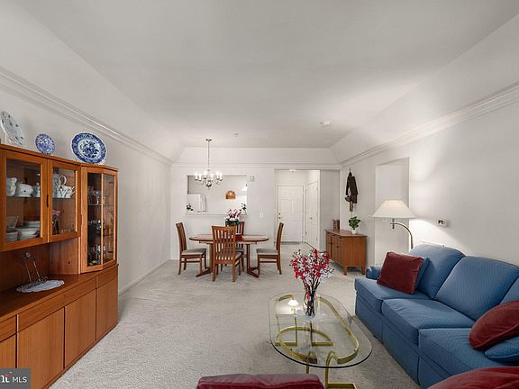 Welcome to your new home! Nestled on the third floor of a desirable 55+ mid-rise community in Elkridge, this beautifully maintained 2-bedroom, 2-bathroom condominium offers the perfect blend of comfort, convenience, and relaxation. Step inside to find a spacious and inviting layout featuring an eat-in kitchen with a breakfast bar, ideal for casual dining. The living and dining areas are elegantly appointed with plush carpeting, creating a cozy atmosphere for entertaining or unwinding. Step outside onto your private balcony and take in the tranquil, wooded views of the nearby golf course—your personal sanctuary to relax and unwind. The primary bedroom is a true retreat, complete with a private en suite bathroom offering dual sinks, a walk-in closet, and a charming sitting area—perfect for sipping your morning coffee or tea while you enjoy the serene winter views. A second generously sized bedroom also includes a walk-in closet, providing ample storage and for added convenience, a separate laundry area with new washer and dryer is also included. Your new home also offers the convenience of a one-car garage located just outside your front door, as well as an additional 80 square feet of storage space. The community features an outdoor pool, a large clubhouse, tennis courts, and fully equipped exercise rooms. Within minutes, you'll find local shopping, grocery stores, and a variety of amenities to meet your needs. Socialize and connect with neighbors through organized events like potluck dinners, birthday gatherings, and club activities that foster a vibrant and welcoming community. Pets are welcome with a weight limit of 30 lbs (maximum of 2 pets).