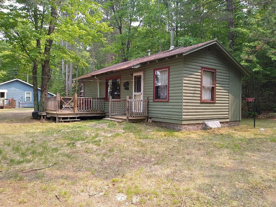Nice 3 season condo on the Three Lakes Chain of Lakes. Level frontage, sandy beach, pier. This two-bedroom, one bath, one level cabin is north woodsy and has everything you need to enjoy the chain with many opportunities to fish, boat and just enjoy the water. There is a wood burning stove and in the 5-foot crawl space is a newer furnace. The view of big water also offers sunsets. Fishing is good and boating excellent. There is a pier of your own and a storage building with a size of about a one car garage for boat, snowmobile or whatever. Very quiet area adjoining the forest. Appliances are included and most furnishings. Newer kitchen sink and cabinets. There is a shared septic and point well. Occupancy not before end of July 2023.
