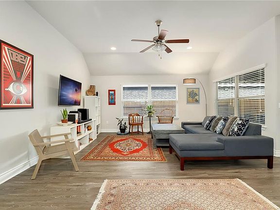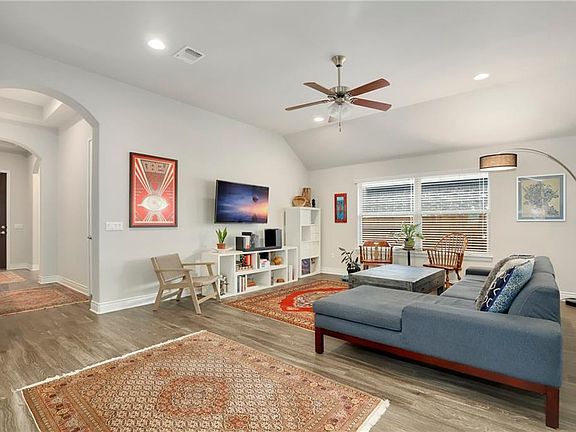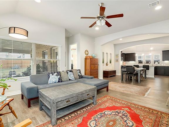 This 1 story Easton Park beauty is in pristine condition, move-in ready and a must see! Features include an amazing brightly lit gourmet kitchen equipped with stainless steel appliances, center island with bar seating, granite counters, ample storage and counter space with undercabinet lighting. Kitchen flows into a large dining space and living area ideal for relaxed entertaining. High ceilings, accent walls and beautiful flooring come together for an open feel throughout. Retreat to a large private primary bedroom with window seat and backyard views. Enjoy a great community offering numerous parks, green space, hike/bike trails, community center, resort style pool and fitness all within close proximity to downtown Austin or San Marcos.