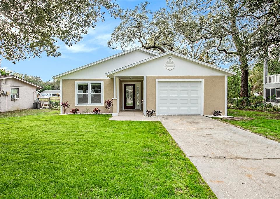!!!!!PRICE REDUCED!!!! Completely and Professionally remodeled inside and out!! **LAKEFRONT PROPERTY** This beautifully designed modern/traditional 4-bedroom, 2 full bath home boasts many extras. House sits in a gorgeous well developed niche neighborhood with only one way in and out, no cut through traffic and on a cul-de-sac. It’s perfect for a family. This is a Lake waterfront property in New Port Richey with just over 1700 Sq. feet and on a .28-acre lot and no HOA. The home has a beautiful kitchen with granite and butcher block counters, glass mosaic backsplash, stainless-steel sink with gooseneck faucet and energy efficient stainless-steel appliances. The high-end finishes flow throughout the house and into the new beautifully updated bathrooms with custom tile, glass mosaic tile inserts, waterfall faucets and a modern rain shower with body jets and water wand. The Primary bedroom has a walk-in closet and ensuite bath with double vanity sinks. The home has a rear concrete patio and deck overlooking the tranquil and beautifully maintained lake New upgraded doors, hardware, and moldings along with beautiful wide plank flooring throughout the house enhance the warm atmosphere of this home. The professional remodeling of this house was not just a face lift. The house has all new updated switches, outlets, light fixtures, updated plumbing, new water heater and a new energy efficient Lennox air conditioning unit. Even the garage area has been updated with fresh paint and a freshly coated epoxy floor with broadcast accent flakes. This house does not disappoint on curb appeal either. The total remodel Includes a brand-new architectural shingle roof. All New stucco façade and freshly painted exterior with accent trim. The yard is freshly seeded and beautifully landscaped with new plant beds. This is a gorgeous house in a great location. It is move in ready and WILL NOT LAST!!