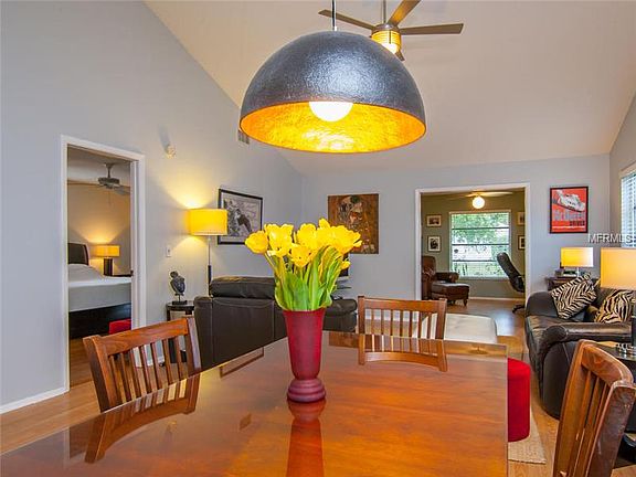 This lovely home on Eleanor Circle has stunning trees and lush landscaping. It is very open, fresh and bright with natural lighting. Gorgeous new granite kitchen and custom raised panel oak cabinets are of note. Pass through window into dining area. White appliances. Spacious dining and living rooms with vaulted high ceiling. Pocket doors in the den. Sliders off to screened-in lanai. New laminate wood flooring in living, dining and den. New bamboo floors in dazzling owner's retreat along with new sink bowl, cork flooring, glass walk-in shower, new vanity. Glass sliding barn-style door from bedroom to bath. So cool! Single-car attached garage. Beautiful lighting. Private clubhouse with pool and tennis courts for only 47 homeowners. Pinehurst is a deed-restricted community. Welcome home!