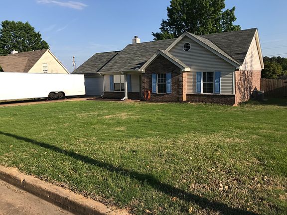 Cute 3/2 brick home with vinyl siding located in sought-after Eastover subdivision. 1 minute from Kroger and 3 minutes from Walmart. Outside you’ll find a large concrete drive, gutters across front, spacious front and back yard, newer AC system, storage shed, and 2 car garage. Roof was replaced in 2011. Inside is new paint and a brick/gas fireplace. The large kitchen with breakfast area boasts gas stove, oak cabinetry, food pantry, and a refrigerator that can stay as per offer. Ceiling fans throughout discourage summertime heat. New flooring allowance pending asking-price offer. Please text 901-488-8742 for return call and to schedule walk through. Willing to co-op with an agent.